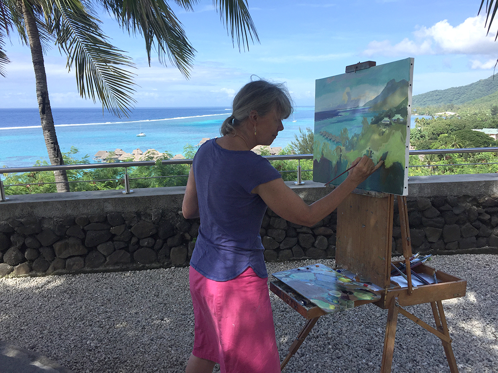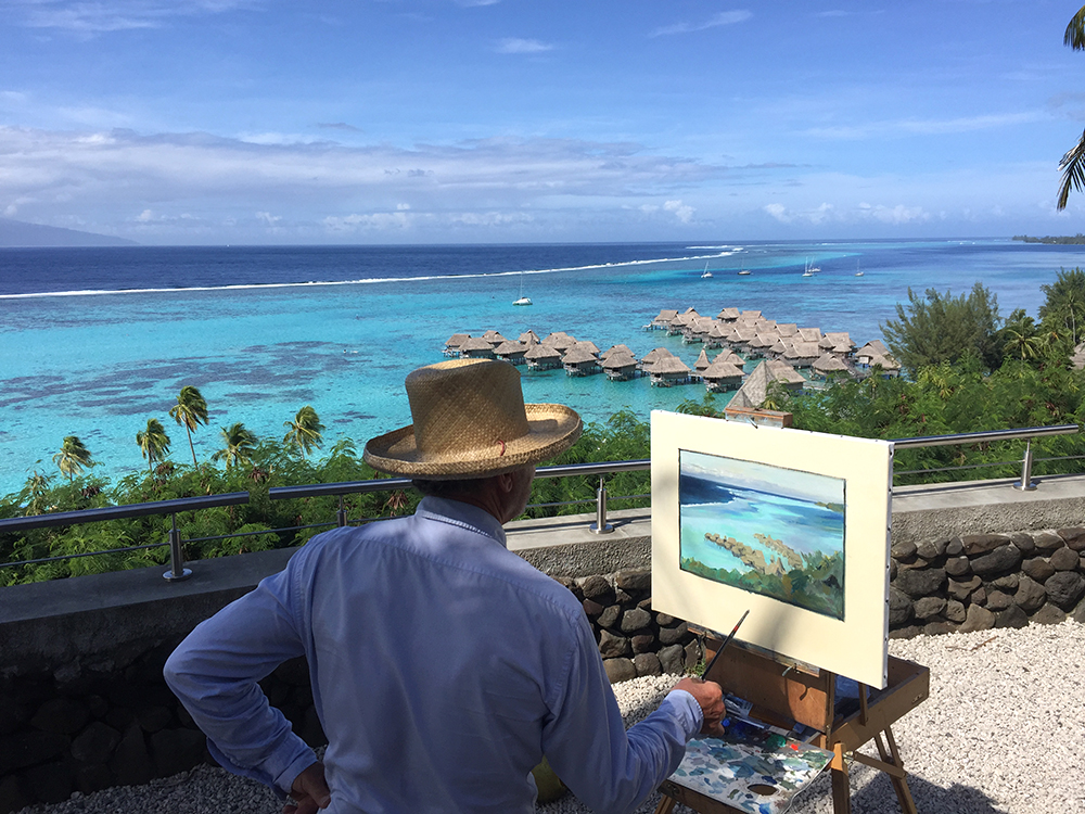 Escale organisée par le CV Guerry commandant la base navale de Tahiti, de deux Peintres officiels de la Marine en Polynésie, à l’occasion des cérémonies du 250ème anniversaire de l’arrivée de Bougainville à Tahiti.