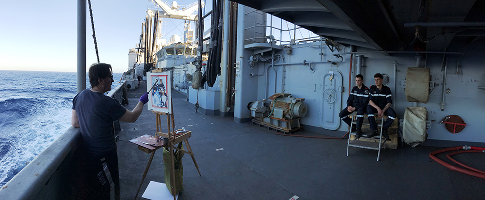 -Echanger et s’adapter à la vie du bord puis trouver des moyens techniques artistiques pour faire des portraits de marins sans faire poser.