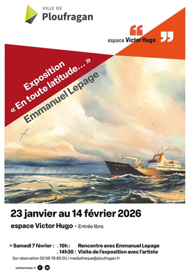 Emmanuel Lepage a le plaisir de vous inviter à découvrir sa prochaine exposition « en toute latitude » qui se déroule jusqu’au 14 février 2026 à l’espace Victor Hugo de Ploufragan. Expositions individuelles.