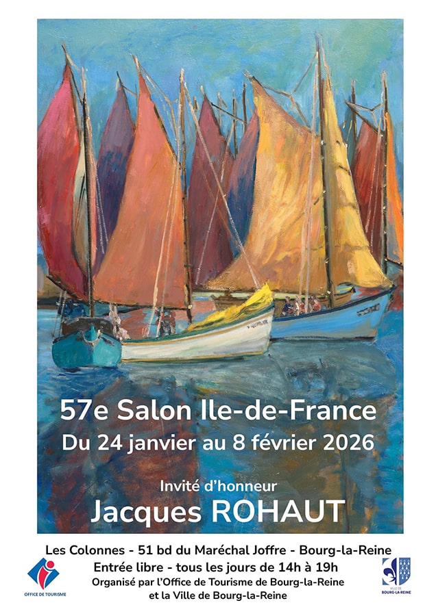 Jacques Rohaut a le plaisir de vous inviter à découvrir le Salon de Bourg la Reine qui se déroulera du 24 janvier au 8 février 2026 au cours duquel il sera l’invité d’honneur. Expositions collectives.
